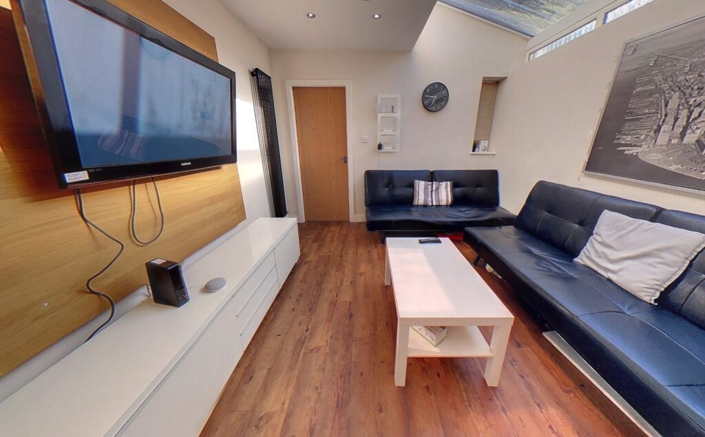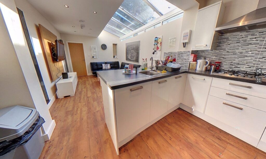 This property’s sleek lounge and adjoining open-plan kitchen meanwhile have been designed with expansive skylights, and an array of spotlights, creating a naturally open and airy atmosphere. In the lounge, students will find stretching plush sofa with soft cushions, and a wall-mounted television, making this the perfect space to unwind with friends after a long day.