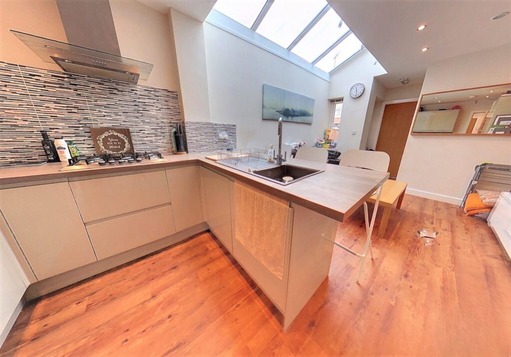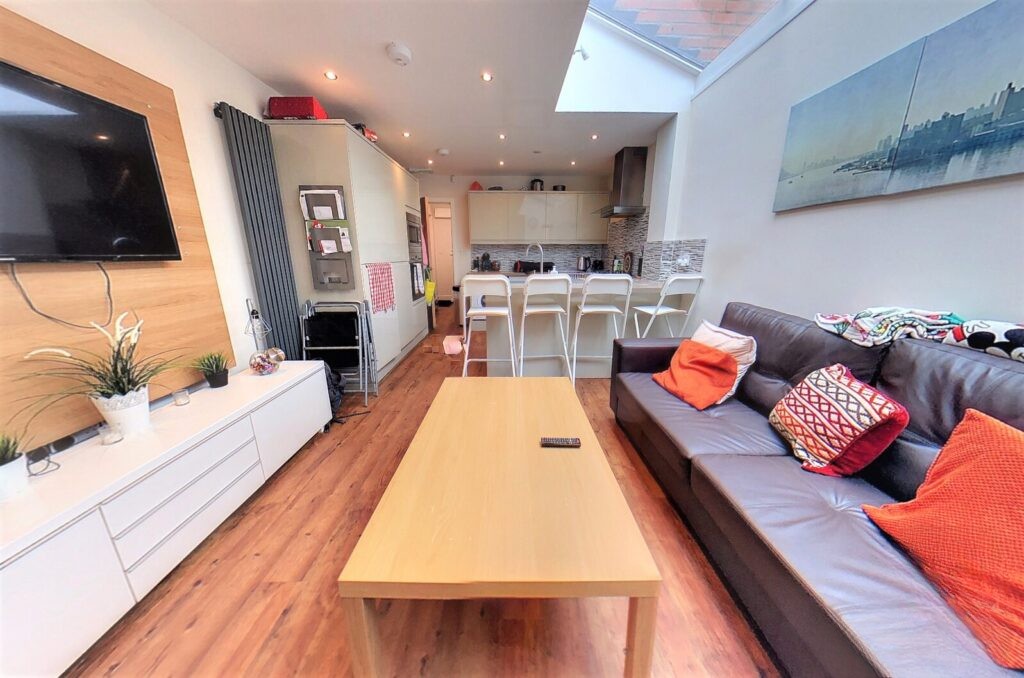 This stylish 6-bedroom student property in Selly Oak showcases a stunning interior, with sleek wooden flooring, sunny skylights, and bright spotlights in the communal areas creating a naturally light and open atmosphere for tenants.
